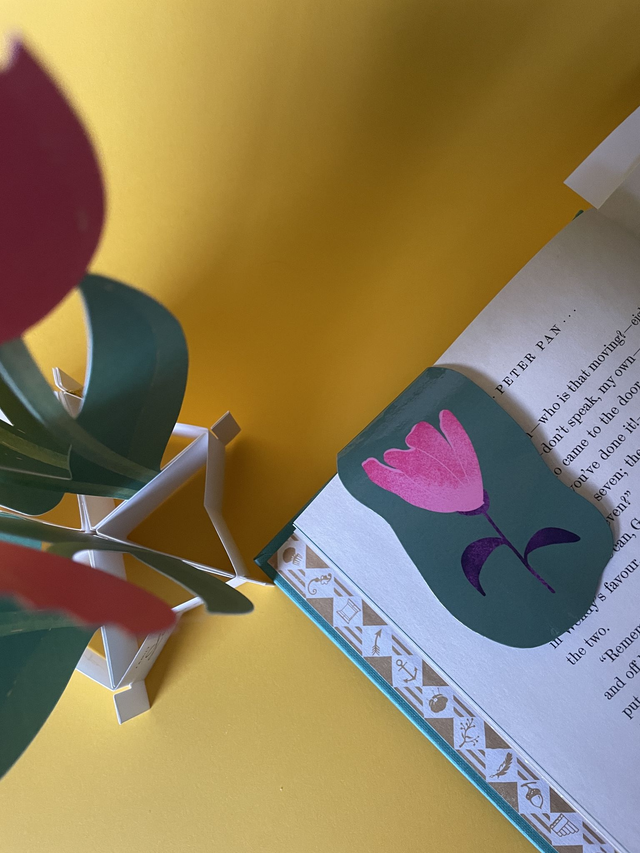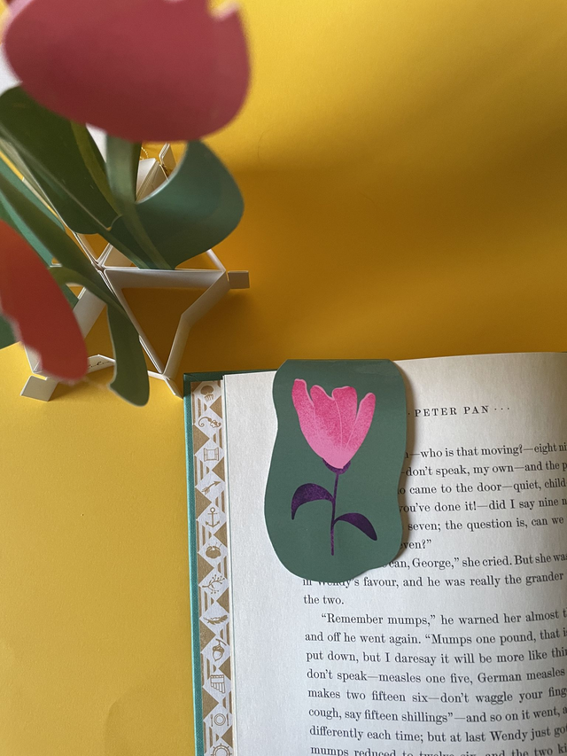 J’aime les fleurs et j'adore les dessiner sous toutes leurs formes, qu'elles existent ou non. Pour celle-ci, je souhaitais de la simplicité avec de douces nuances, sur un fond vert qui rappelle la nature. Dès que j'ai terminé cette illustration, je savais qu’elle deviendrait un marque-page magnétique.